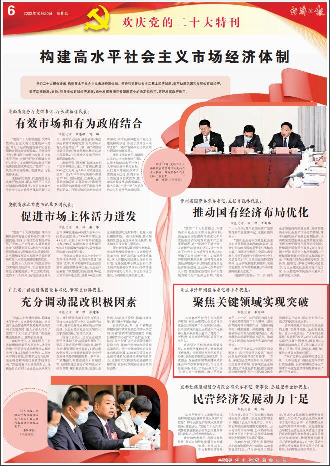 经济日报报道 | 党的二十大代表 沙坪坝区委书记唐小平:聚焦关键领域实现突破
