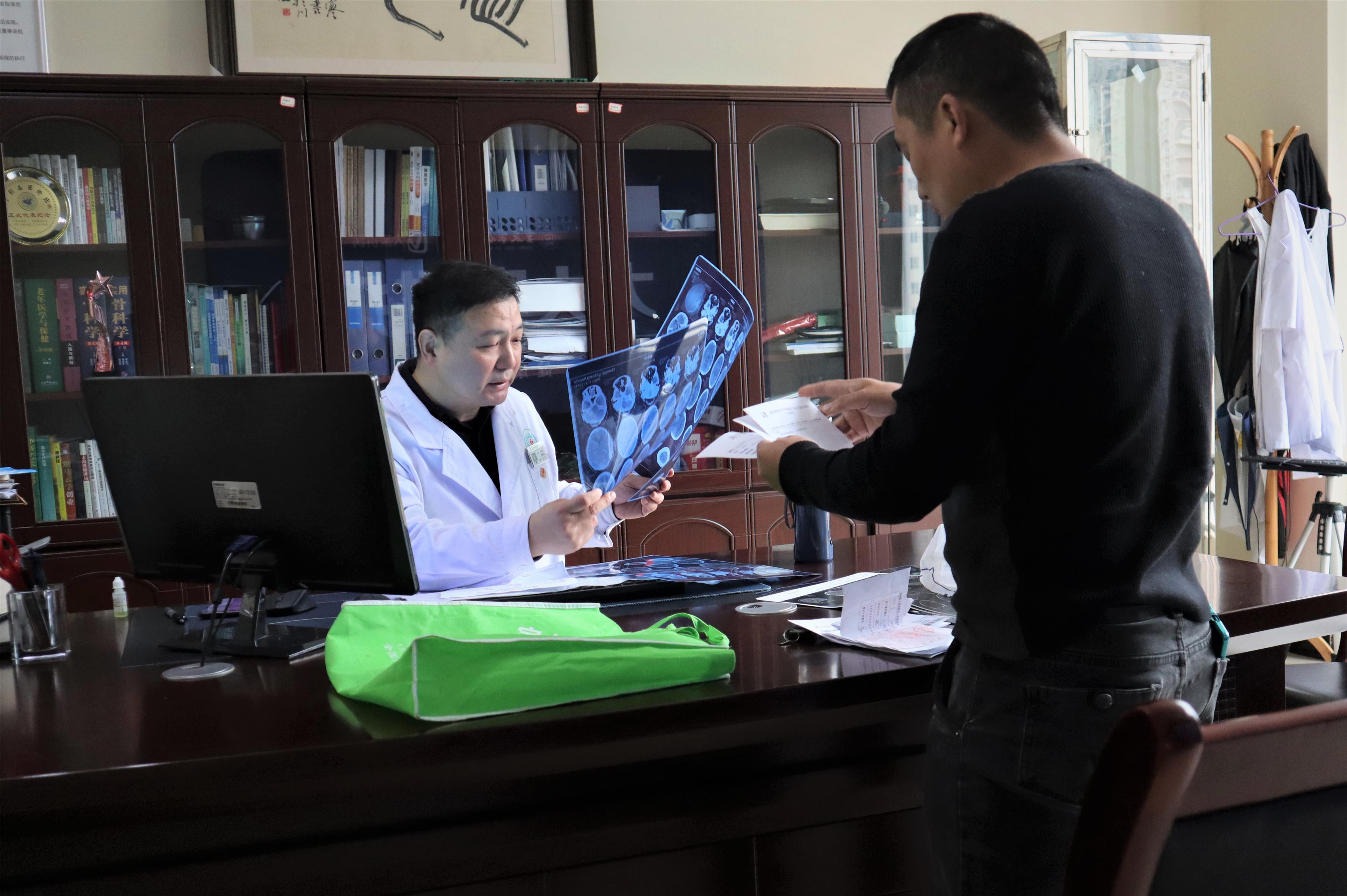 印象最深的还是在2013年,他刚离开部队自主择业,在四川泸州工作的医院里,一对前来求助的父子。父亲颅底畸形躺在担架上,儿子没有收入来源,全家人神情落寞而窘迫。