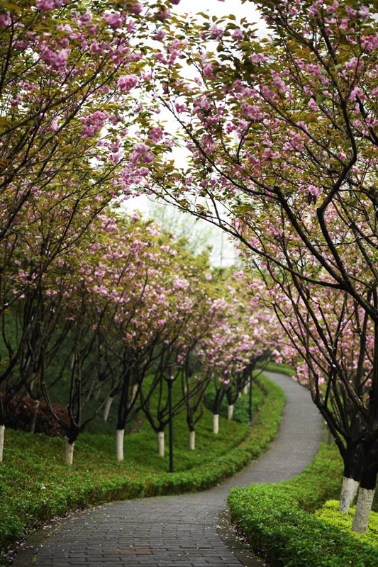 九龙坡区中梁山街道半山公园里道路两旁的樱花盛开。(摄影:王茂松)