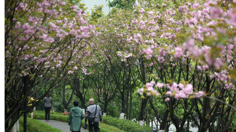重庆九龙坡:中梁山街道半山公园下起了“樱花雨”